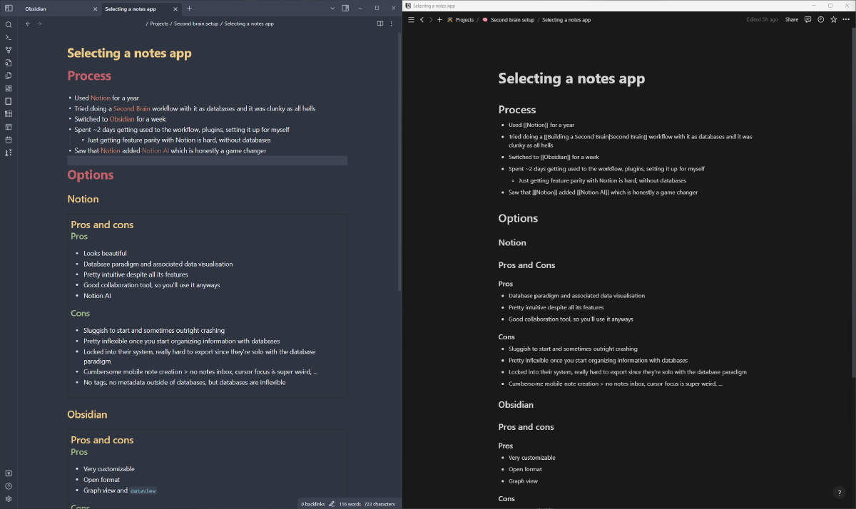 I ended up almost destroying my last 18 months of notes because I was trying to put some structure on it. Add to that all of my previous pet peeves and I finally got the motivation to give Obsidian a real try.