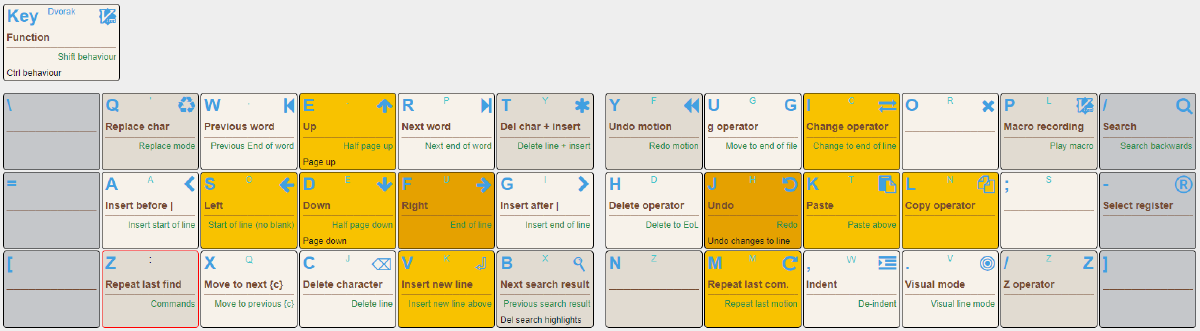 - It is optimized for my usage with a Dvorak split orthogonal keyboard