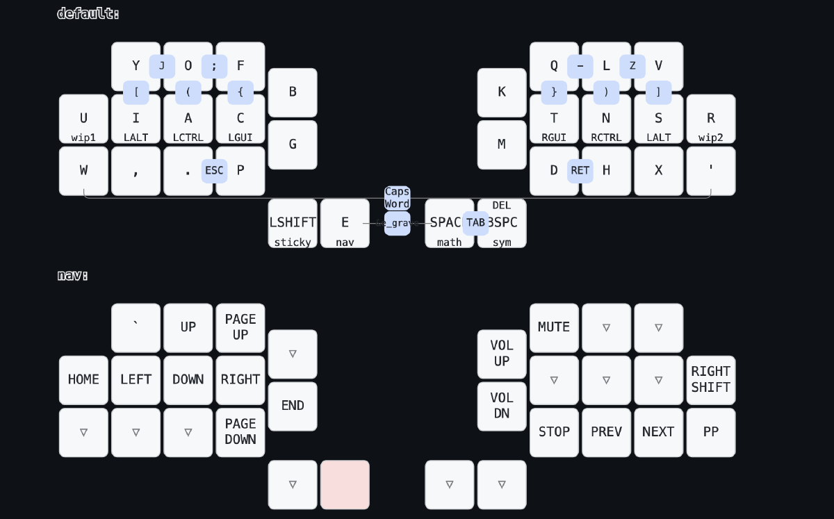 To close it out, here’s was the 30 keys version of my current layout:
